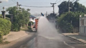 นายกเทศมนตรีเมืองนครปฐม เล็งเห็นปัญหาฝุ่น PM2.5 มอบหมายให้งานป้องกันและบรรเทาสาธารณภัย ดำเนินการนำรถบรรทุกน้ำออกฉีดพ่นเพิ่มความชุ่มชื้นในอากาศโดยรอบ