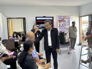 นายกเทศมนตรีเมืองนครปฐม ได้ตรวจเยี่ยมสอบถามอาการของผู้รับบริการ ในคลินิคโรคไม่ติดต่อเรื้อรัง พร้อมพูดคุยให้กำลังใจในการดูแลตนเอง