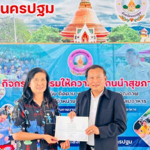 เทศบาลเมืองนครปฐมได้มอบวุฒิบัตรแก่ผู้ผ่านการอบรม “หลักสูตรการสุขาภิบาลอาหารสำหรับผู้ประกอบกิจการ”