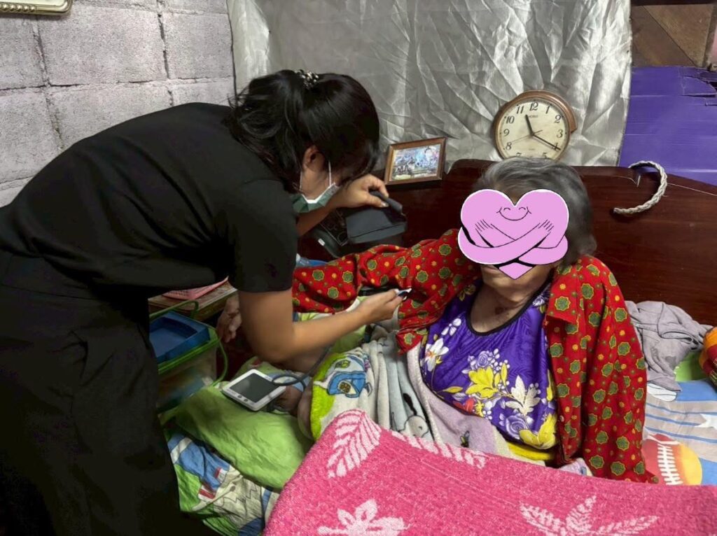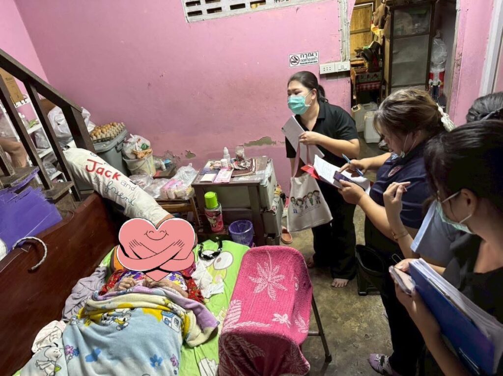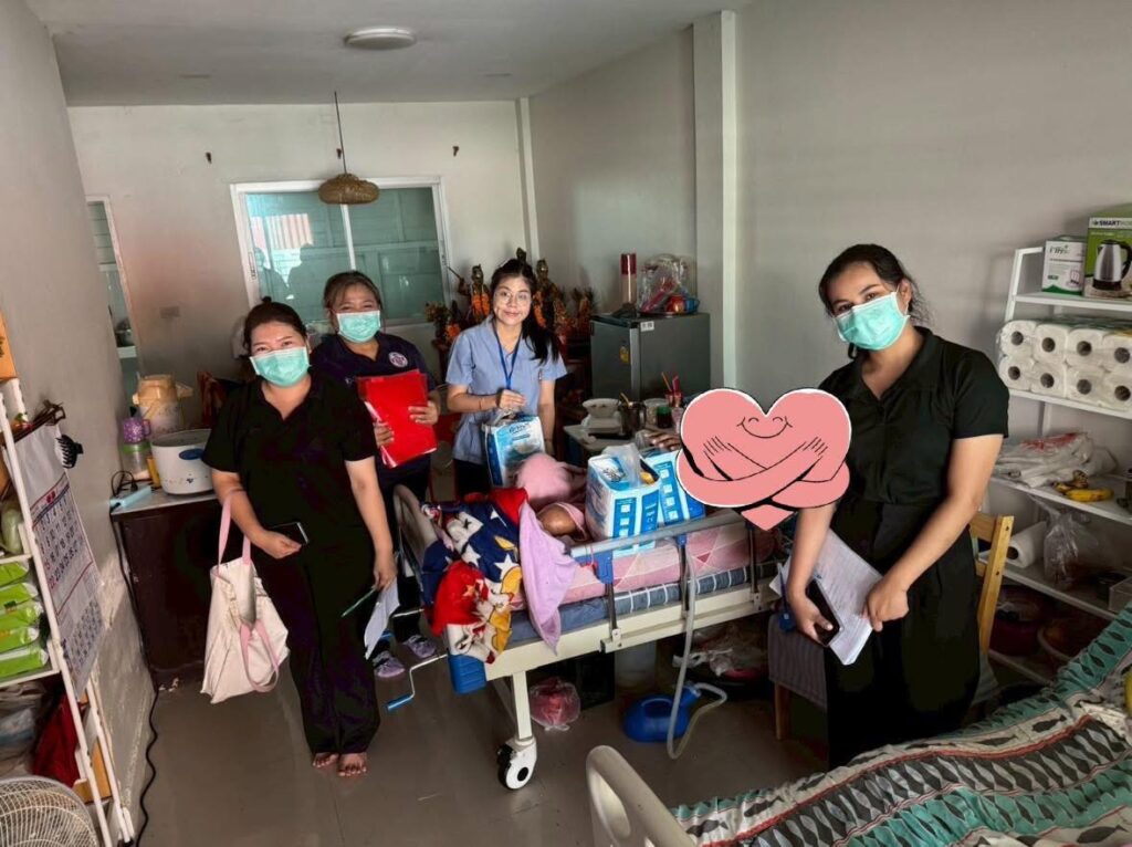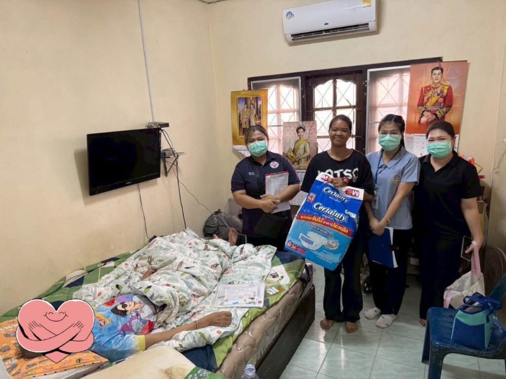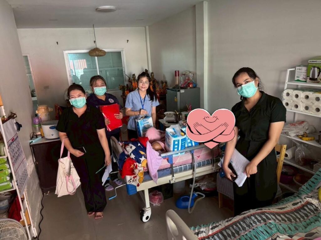 ขอขอบคุณ คุณปาริฉัตร สิมมา พยาบาลวิชาชีพชำนาญการ โรงพยาบาลส่งเสริมสุขภาพตำบลบ้านนาสร้าง ที่ให้ความอนุเคราะห์ประเมินผู้ป่วย ร่วมกับทีมเทศบาลเมืองนครปฐม มา ณ ที่นี้ด้วยค่ะ