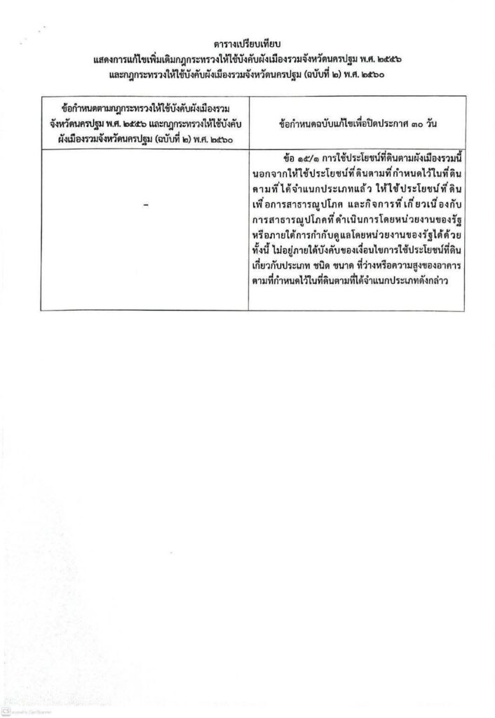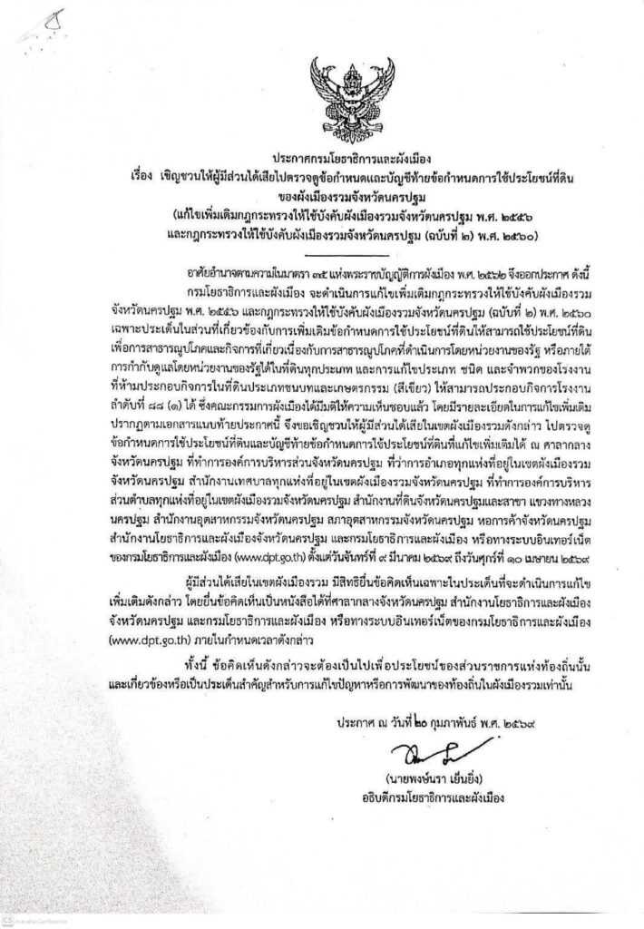 ขอเชิญประชาชนซึ่งเป็นเจ้าของหรือผู้ครอบครองที่ดินหรืออาคารที่ตั้งอยู่ ตรวจดูข้อกำหนดและบัญชีท้ายข้อกำหนดการใช้ประโยชน์ที่ดิน (แก้ไขเพิ่มเติมกฎกระทรวงให้ใช้บังคับผังเมืองรวมจังหวัดนครปฐม พ.ศ. 2556 และกฎกระทรวงให้ใช้บังคับผังเมืองรวมจังหวัดนครปฐม (ฉบับที่ 2) พ.ศ. 2560) รายละเอียดเพิ่มเติมดังนี้ ![]()