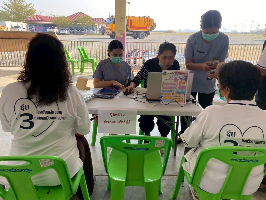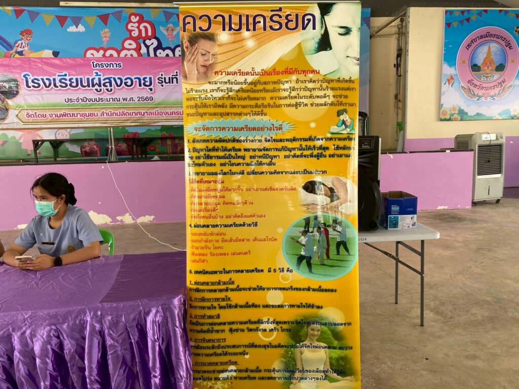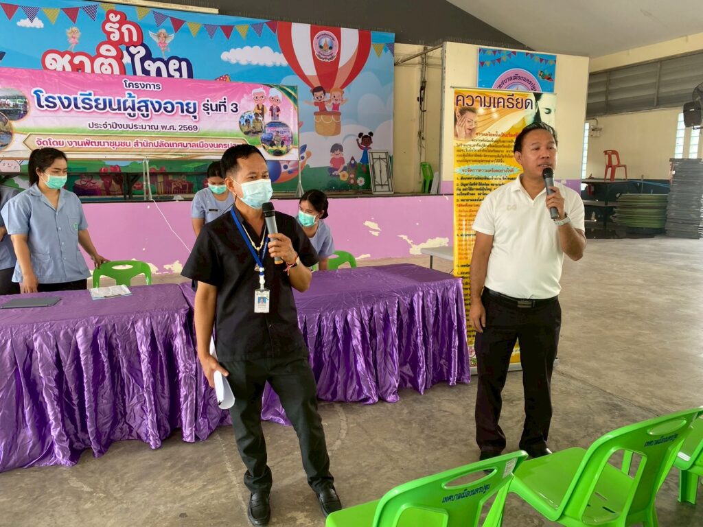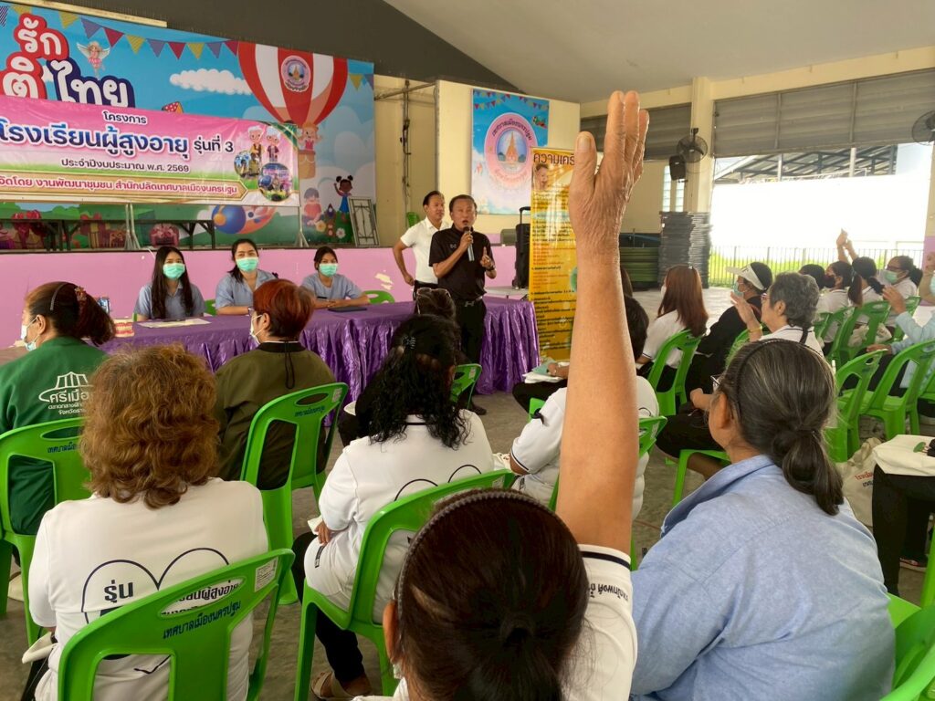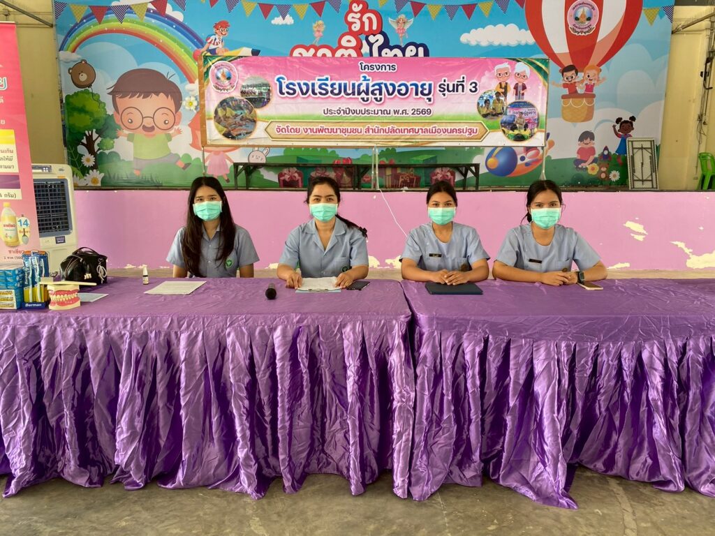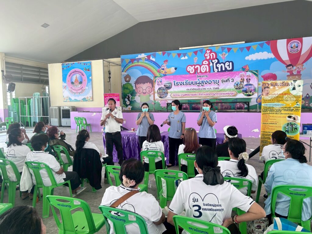 นายณัทพงศ์ ถ้ำเพชร์ นายกเทศมนตรีเมืองนครปฐม ให้เกียรติเป็นประธานและเข้าร่วมกิจกรรมในโครงการโรงเรียนผู้สูงอายุ สำหรับการจัดกิจกรรมในครั้งนี้ เทศบาลเมืองนครปฐมได้รับความอนุเคราะห์จากวิทยากรผู้เชี่ยวชาญ นำโดย นายมนต์ชัย คงความสุข ผู้อำนวยการโรงพยาบาลส่งเสริมสุขภาพตำบลบ้านนาสร้าง พร้อมด้วยเจ้าหน้าที่โรงพยาบาลส่งเสริมสุขภาพตำบลบ้านนาสร้าง ร่วมบรรยายให้ความรู้เกี่ยวกับโภชนาการอาหารในผู้สูงอายุและการดูแลช่องปากและฟัน นอกจากนี้ยังได้จัดให้มีบริการจุดตรวจคัดกรองมะเร็งลำไส้ เพื่อเป็นการเฝ้าระวังและป้องกันปัญหาสุขภาพในเชิงรุก ให้แก่ผู้สูงอายุที่เข้าร่วมกิจกรรมในครั้งนี้ ณ อาคารอเนกประสงค์เทศบาลเมืองนครปฐม