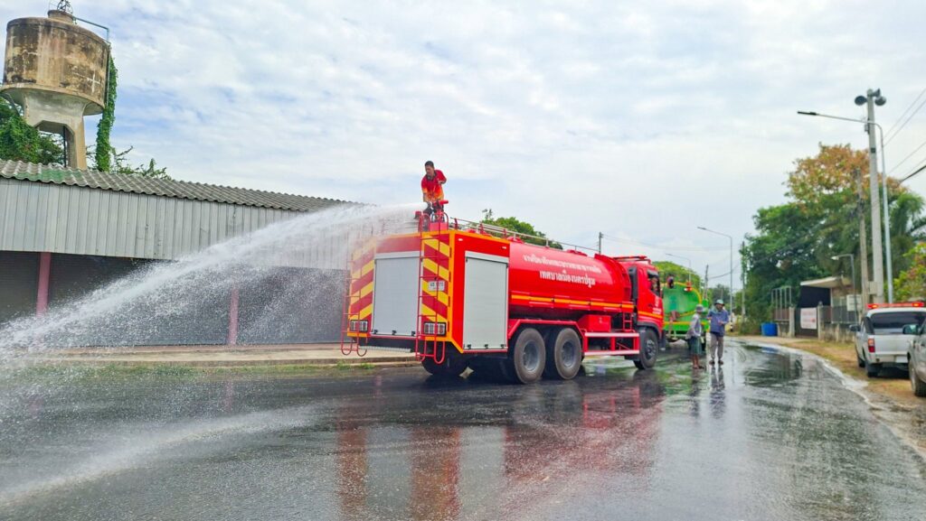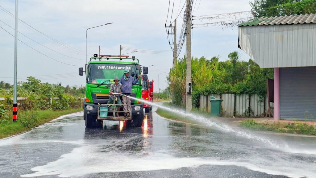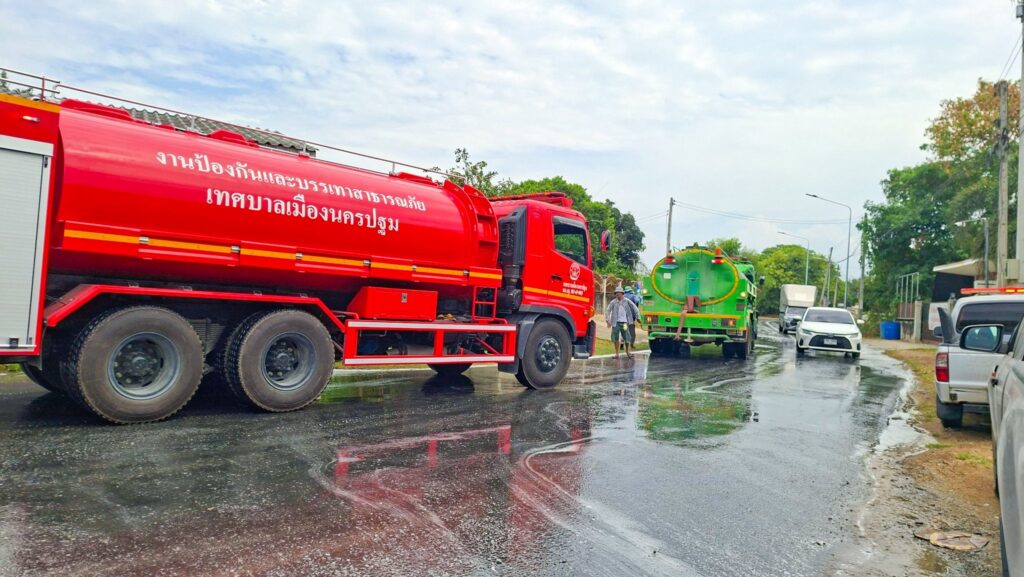 เทศบาลเมืองนครปฐม ขอขอบคุณเทศบาลนครนครปฐม โดยการนำของนายสมโชค พงษ์ขวัญ นายกเทศมนตรีนครนครปฐม ที่ได้สนับสนุนรถน้ำจำนวน 1 คัน เพื่อฉีดล้างทำความสะอาดคราบน้ำขยะและสิ่งสกปรก