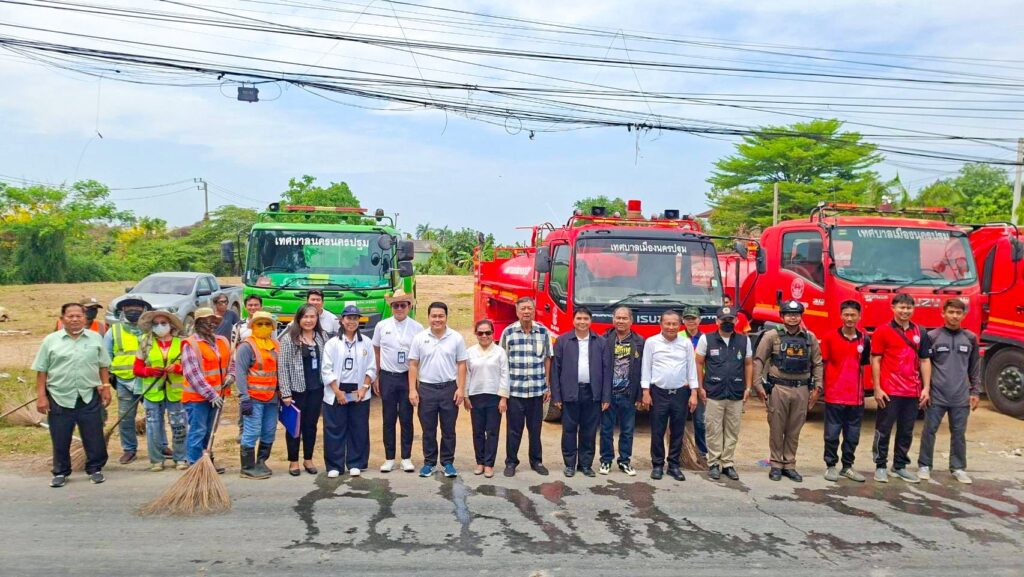 นายณัทพงศ์ ถ้ำเพชร์ นายกเทศมนตรีเมืองนครปฐม พร้อมด้วยคณะผู้บริหาร สมาชิกสภาเทศบาล และหัวหน้าส่วนราชการเทศบาลเมืองนครปฐม ลงพื้นที่ตรวจสอบการดำเนินการฉีดล้างทำความสะอาดผิวจราจรในเส้นทางขนส่งขยะมุ่งหน้าสู่บ่อขยะสืบเนื่องจากปัญหา “น้ำขยะรั่วไหลจากรถขนส่ง” ที่ส่งผลกระทบต่อความเป็นอยู่ของประชาชน ทั้งในมลภาวะทางกลิ่น และความเสี่ยงต่อการเกิดอุบัติเหตุรถจักรยานยนต์ลื่นล้ม เทศบาลเมืองนครปฐมจึงได้เร่งดำเนินการแก้ไขอย่างเร่งด่วน