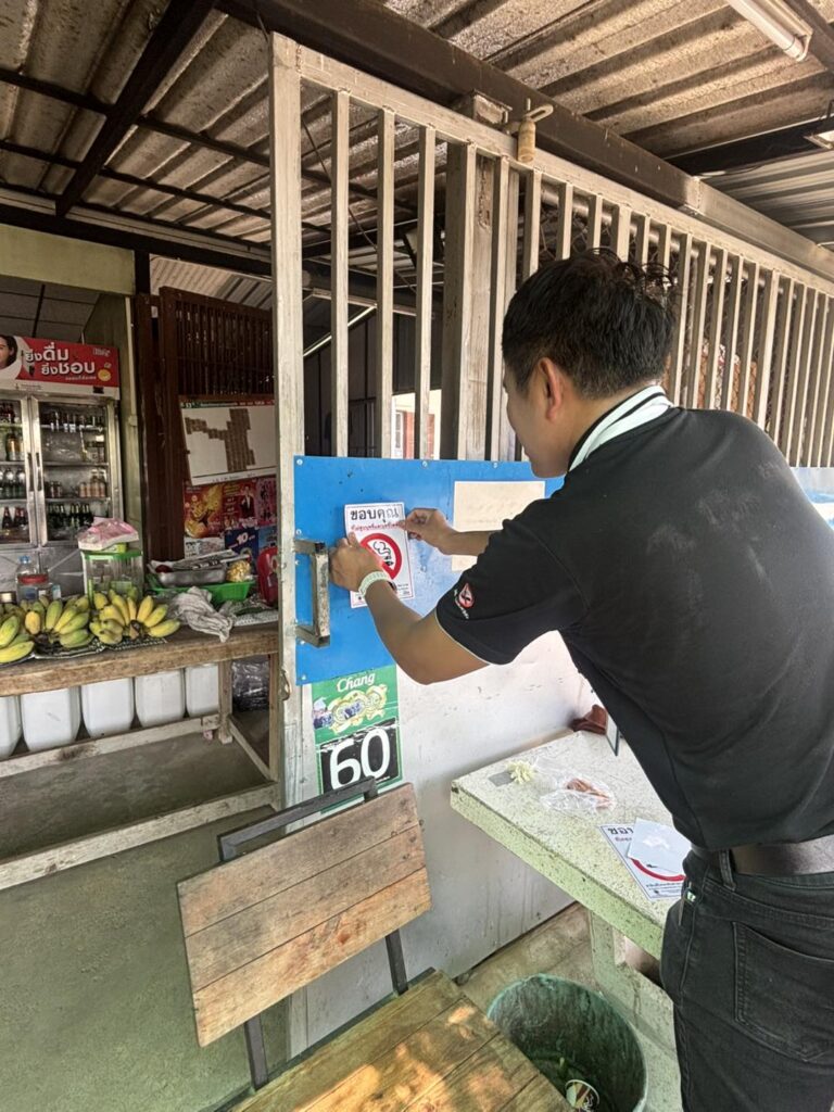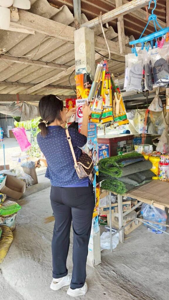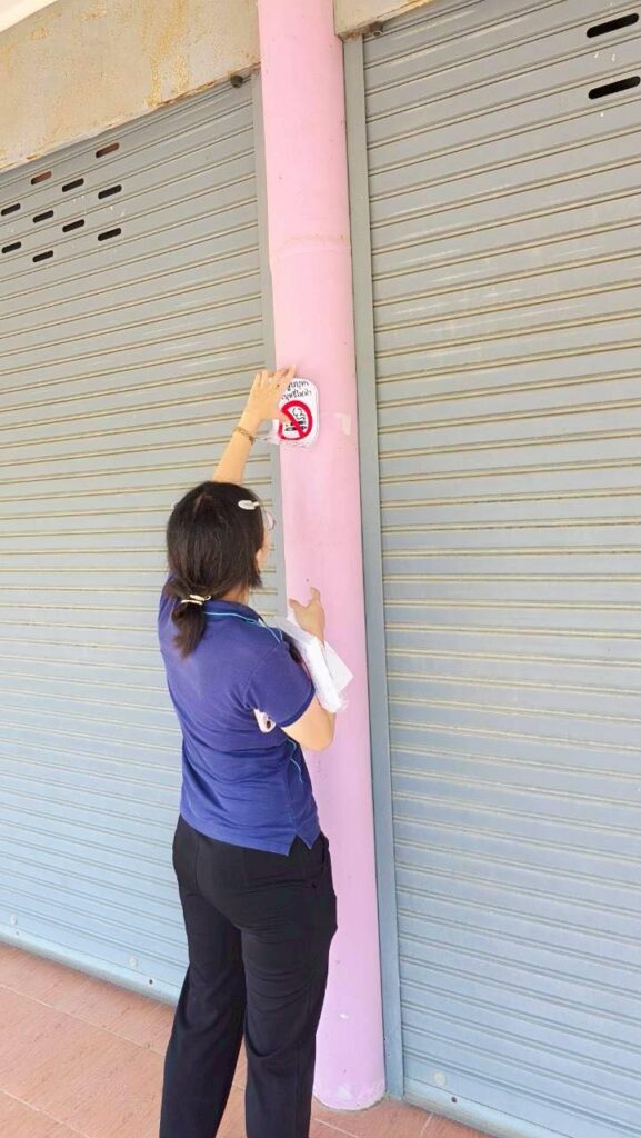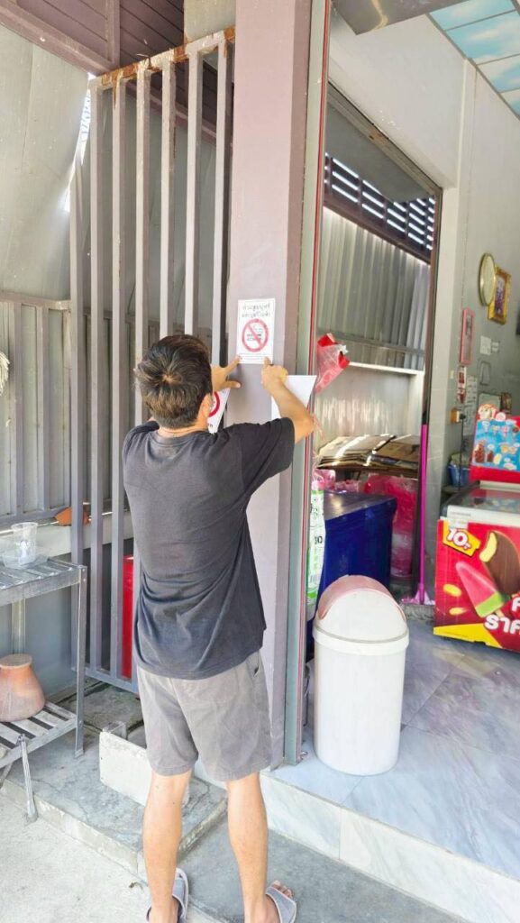 3.แจกสื่อประชาสัมพันธ์ และติดป้ายบริเวณสถานที่ราชการ สถานที่สาธารณะและร้านค้า เพื่อรณรงค์ไม่สูบบุหรี่ในพื้นที่สาธารณะ