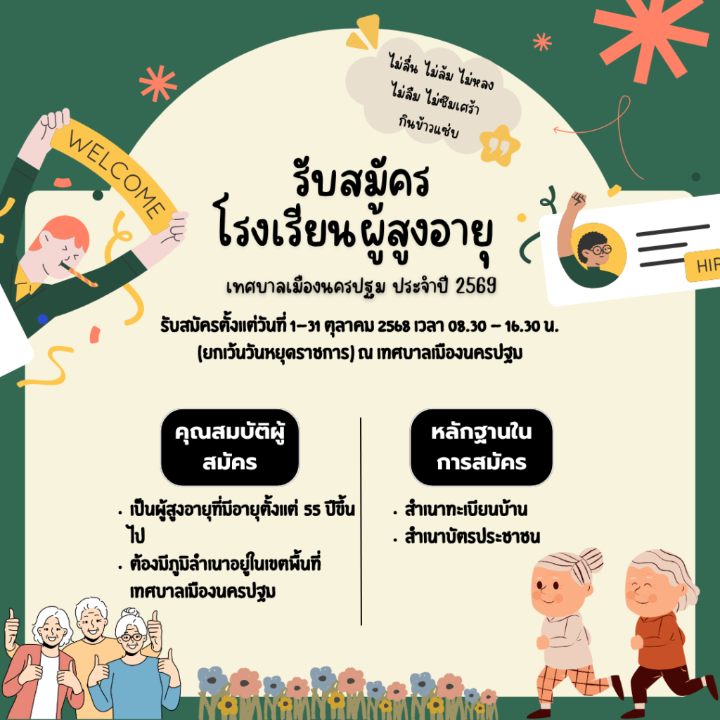 รับสมัครโรงเรียนผู้สูงอายุ เทศบาลเมืองนครปฐมประจำปี 2569