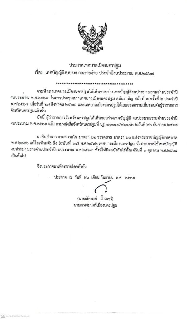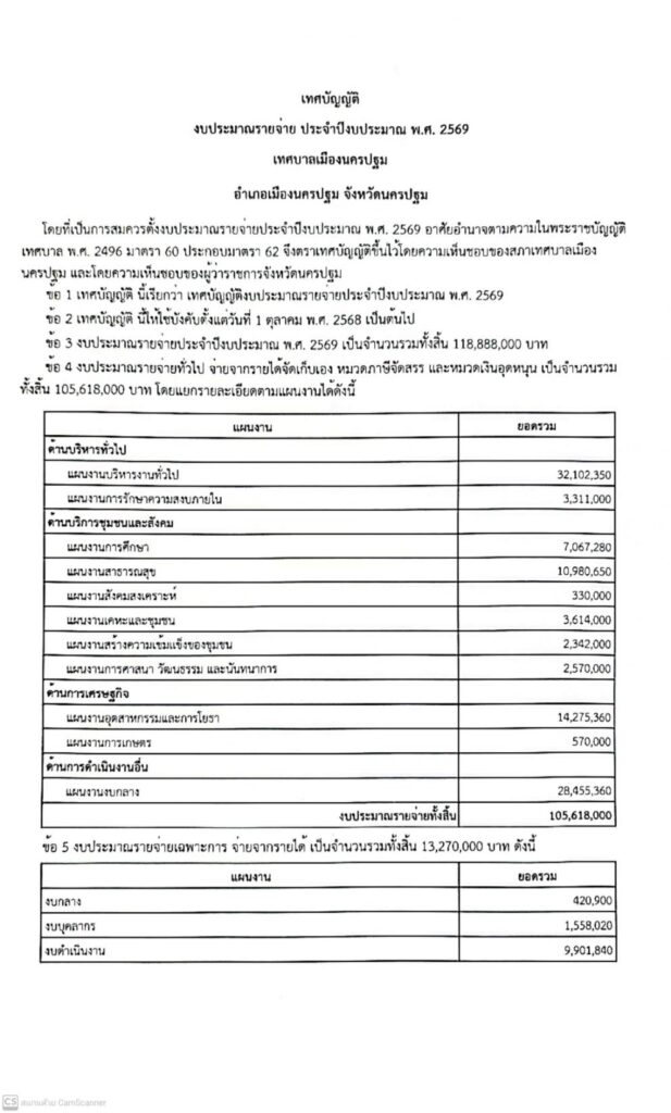 เทศบัญญติงบประมาณรายจ่ายประจำปีงบประมาณ พ.ศ.2569 พร้อมประกาศ