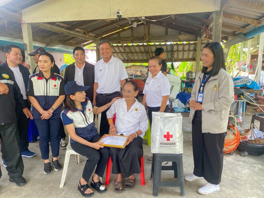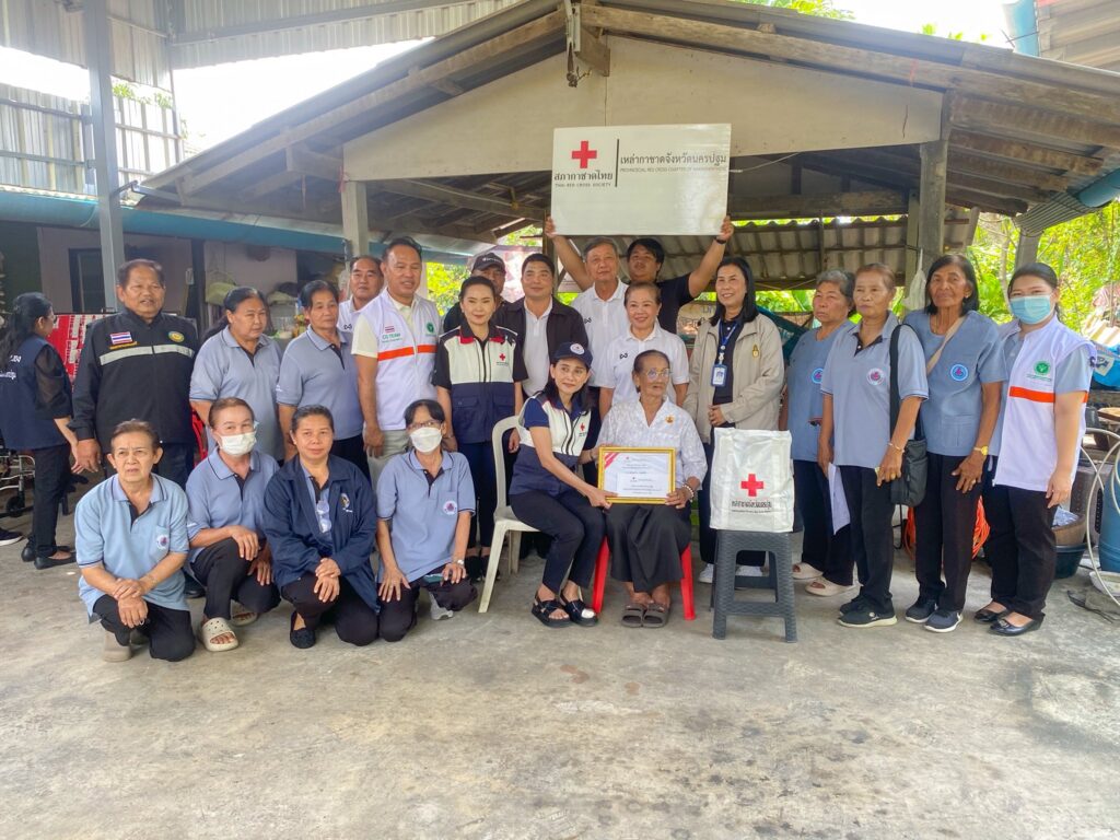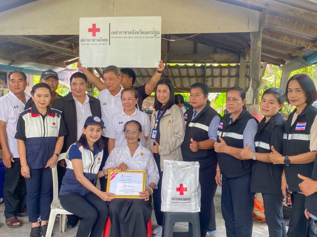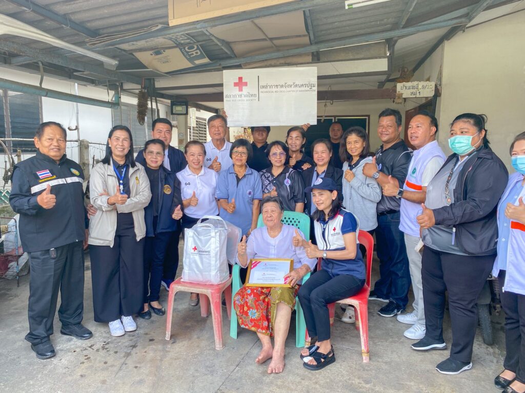 นางสาวอโรชา นันทมนตรี ผู้ว่าราชการจังหวัดนครปฐม/นายกเหล่ากาชาดจังหวัดนครปฐม มอบหมายให้ นางวรณัน สวนทอง รองนายกเหล่ากาชาดจังหวัดนครปฐม พร้อมด้วยกรรมการเหล้ากาชาดจังหวัดนครปฐม ปลัดอำเภอเมืองนครปฐม สาธารณสุขอำเภอเมืองนครปฐม อาสาสมัครสาธารณสุขประจำหมู่บ้าน กำนัน ผู้ใหญ่บ้าน ผู้นำท้องที่ ผู้นำท้องถิ่น และหน่วยงานที่เกี่ยวข้อง ลงพื้นที่เยี่ยมให้กำลังให้ผู้สูงอายุ พร้อมมอบเกียรติบัตร ถุงยังชีพ และมอบเงินรายละ 1,000 บาท ตามโครงการส่งเสริมคุณภาพชีวิตผู้สูงอายุ 100 ปีขึ้นไป ของเหล่ากาชาดจังหวัดนครปฐม ประจำปีงบประมาณ พ.ศ.2569 เพื่อเป็นการสร้างขวัญและกำลังใจ ณ พื้นที่อำเภอเมืองนครปฐม จังหวัดนครปฐม
