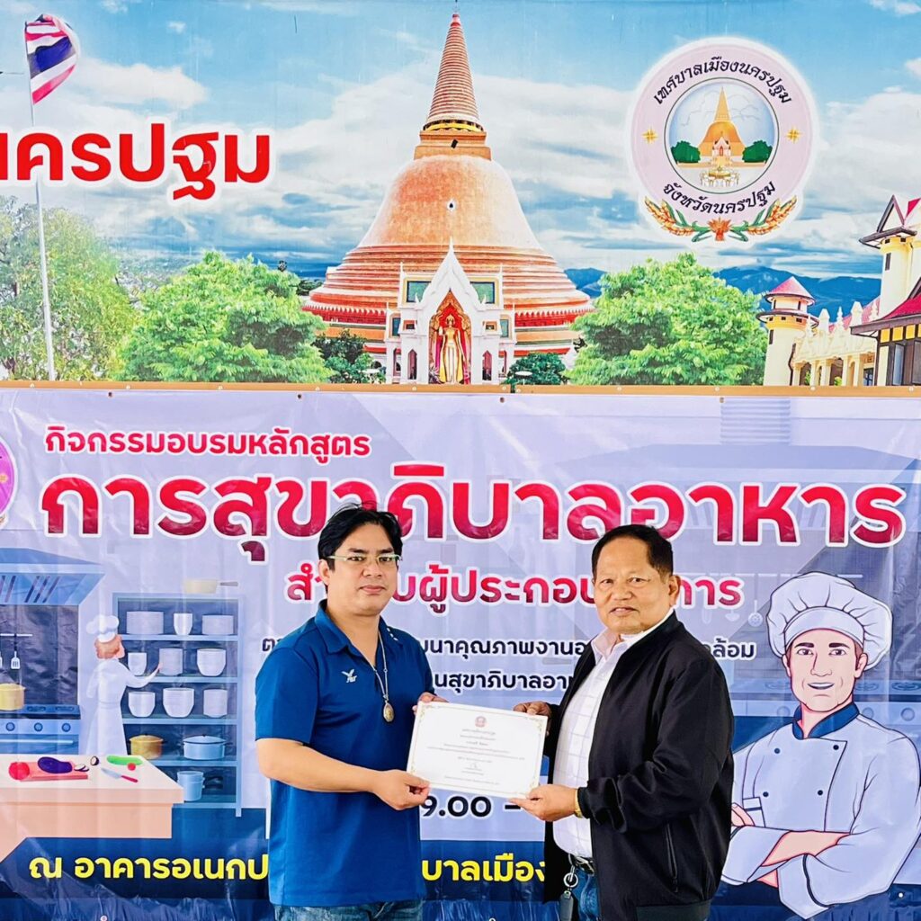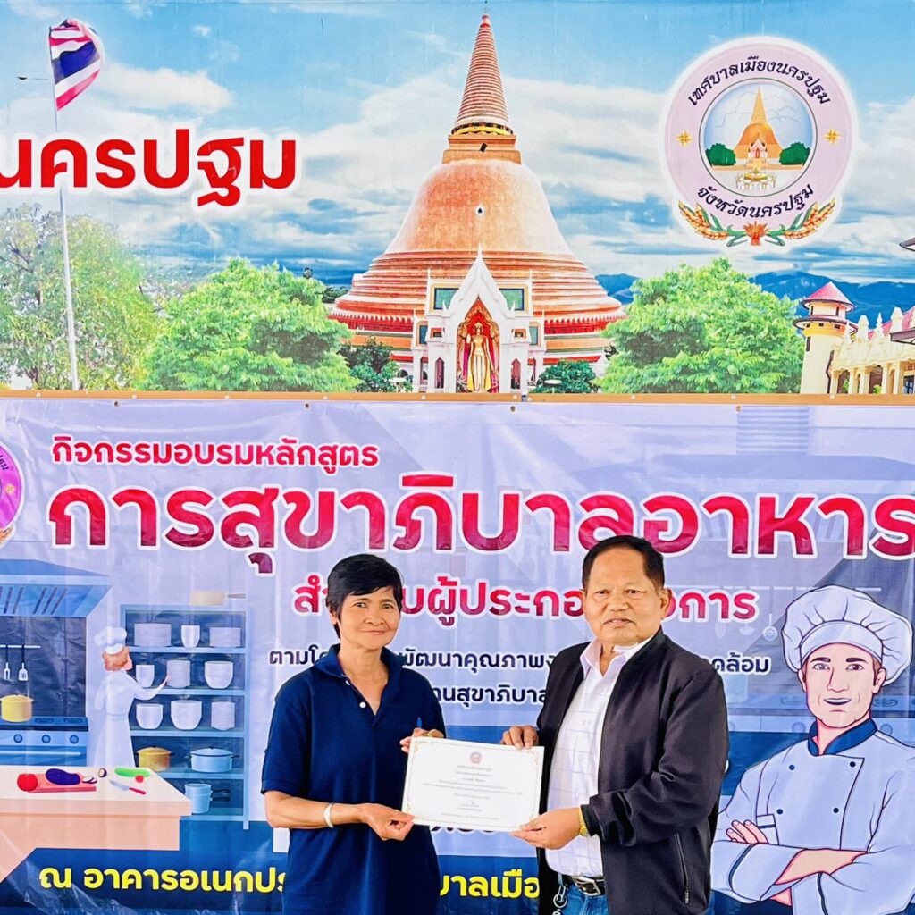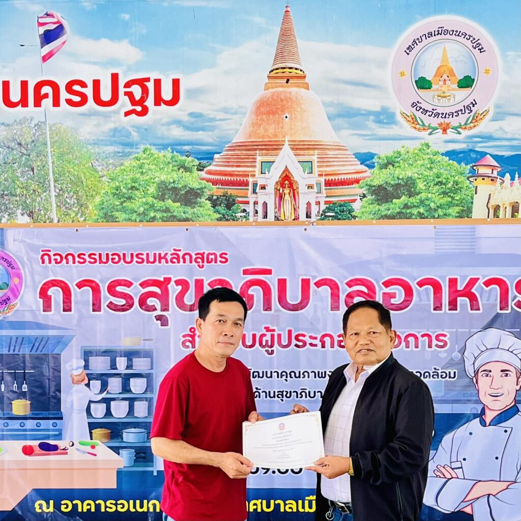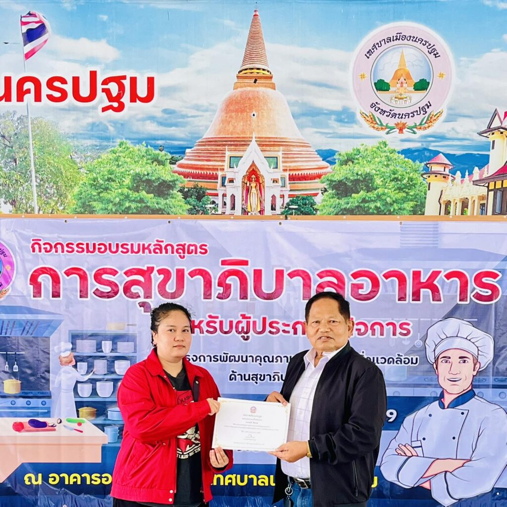 เทศบาลเมืองนครปฐมได้มอบวุฒิบัตรแก่ผู้ผ่านการอบรม “หลักสูตรการสุขาภิบาลอาหารสำหรับผู้ประกอบกิจการ”
