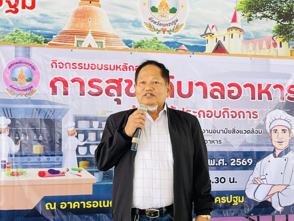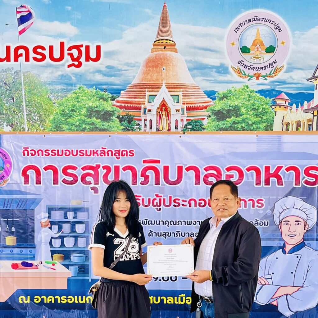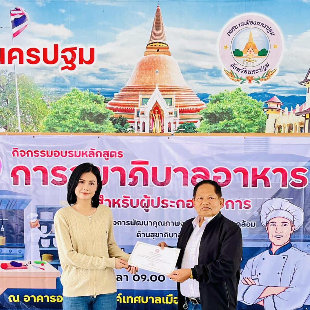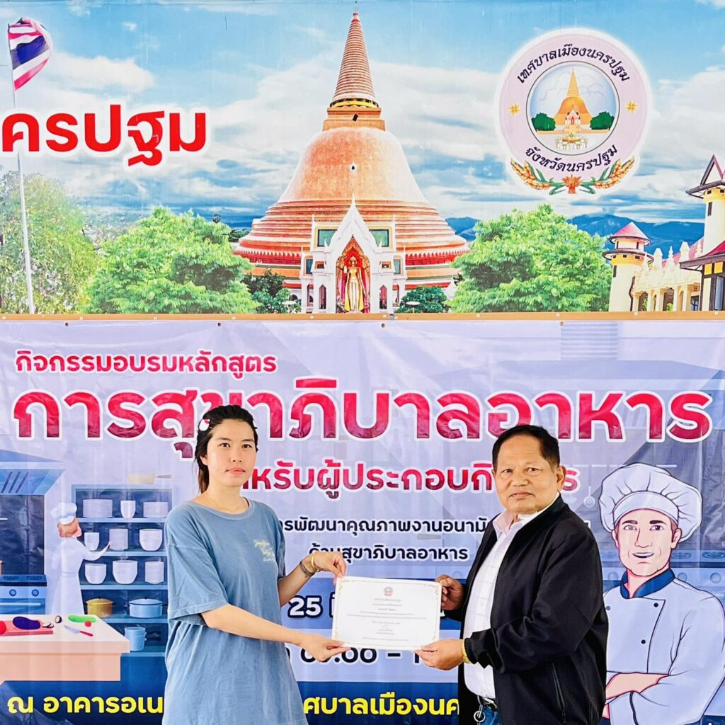 เทศบาลเมืองนครปฐมได้มอบวุฒิบัตรแก่ผู้ผ่านการอบรม “หลักสูตรการสุขาภิบาลอาหารสำหรับผู้ประกอบกิจการ”