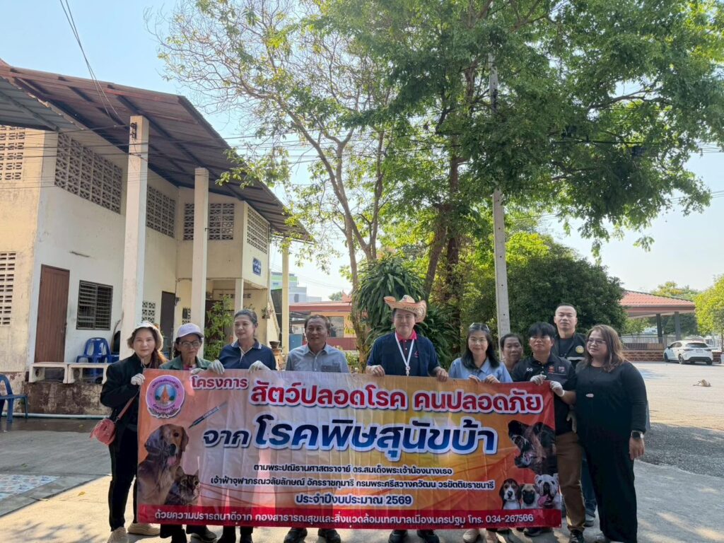 นายณัทพงศ์ ถ้ำเพชร์ นายกเทศมนตรีเมืองนครปฐม และนางสุภา บุทธยักษ์ ปลัดเทศบาลเมืองนครปฐม ได้มอบหมายให้นายอาคม รูปสูง ผู้อำนวยการกองสาธารณสุขและสิ่งแวดล้อม และอาสาสมัครปศุสัตว์ร่วมรณรงค์ฉีดวัคซีนป้องกันโรคพิษสุนัขบ้า ภายใต้